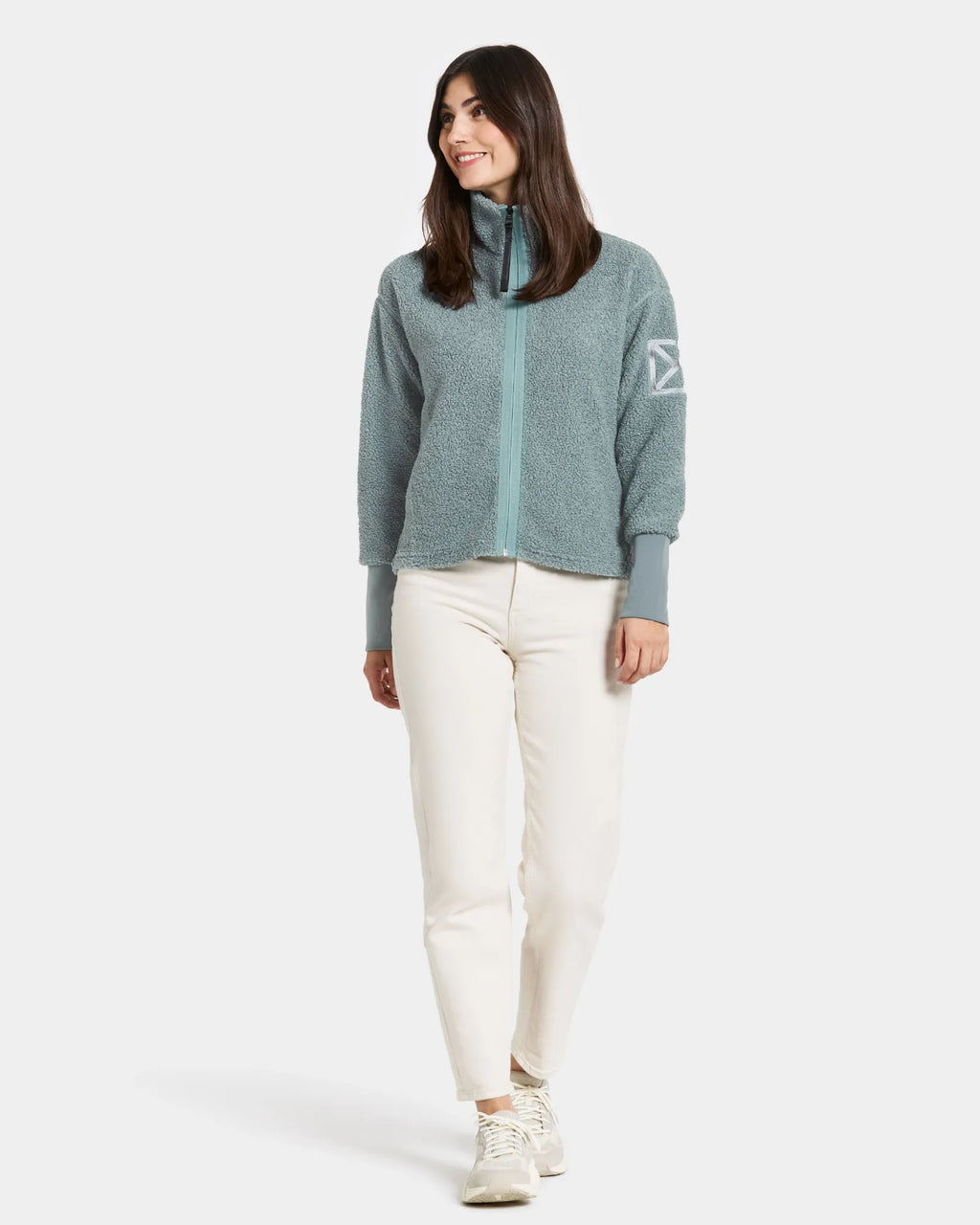 Alexa is a soft and comfortable fleece jacket in pile fabric, perfect for outdoor activities. It has a straight fit and is designed to provide maximum comfort with its 4-way stretch fabric. The jacket has elastic cuffs and practical side pockets, as well as a front zipper closure. It is ideal for layering and provides a cosy feeling on chilly days.